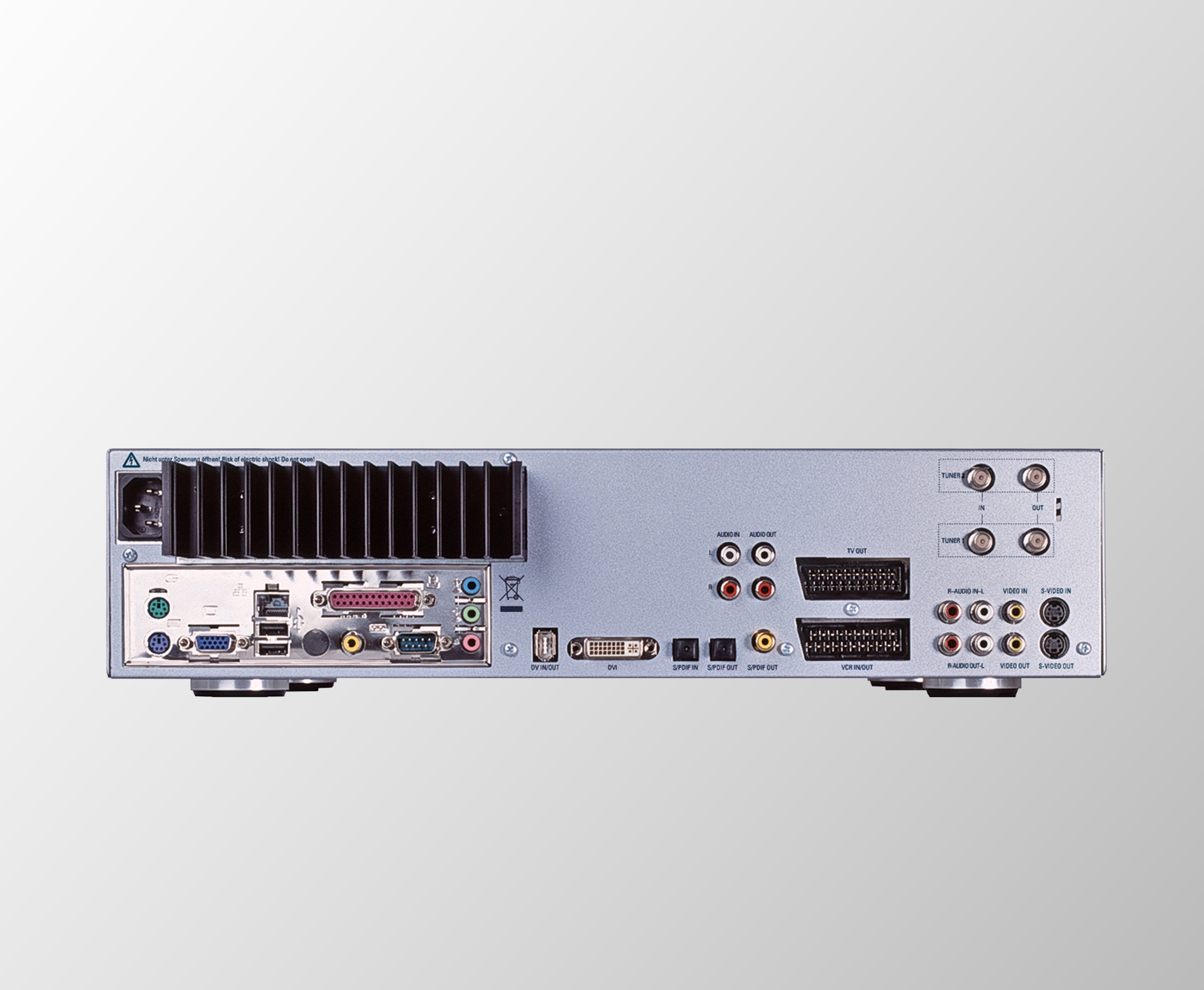 Alles was Sie für Ihr Entertainment benötigen, finden Sie in nur einem Gerät vereint: "Digitale Fernseh- und Radio-Empfänger, Pay-TV-Box, Festplatten- und DVD-/CD-Rekorder, DVD- und CD-Player sowie ein Film-, Foto- und Musikarchiv."