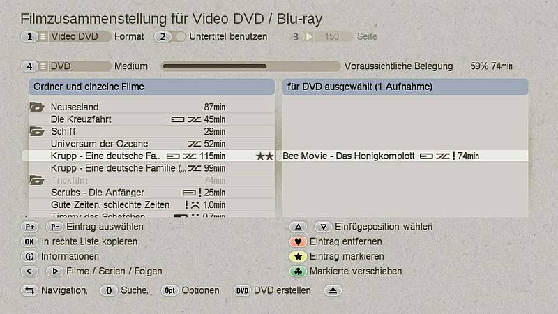 Digital ausgestrahlte Fernsehprogramme können auf der integrierten Festplatte aufgenommen, bearbeitet, angeschaut und verlustfrei auf DVD gebrannt werden.